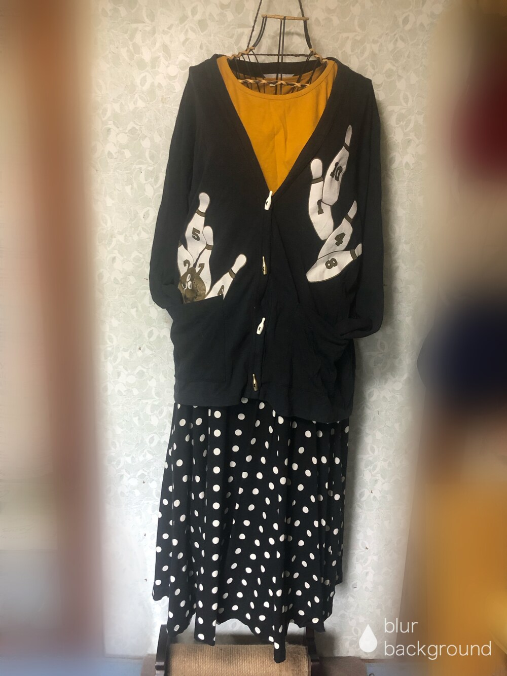 おはようございます いつもありがとうございます 雷と雨の音で目覚めた朝です。 気温は低いのに湿度のせいで暑く感じる 寒いはずなのよ?!!23とかなのよ? ポーリングピンカーデの季節です つまりは長袖の季節と言いたい笑 ドットスカートで可愛く(o´罒`o)