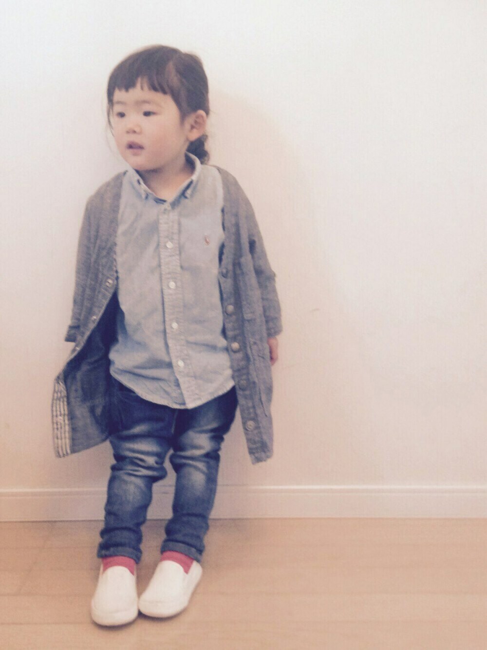 デニム×デニム×デニム×白シューズ 伸ばしていた前髪 また衝動的に切っちゃいました