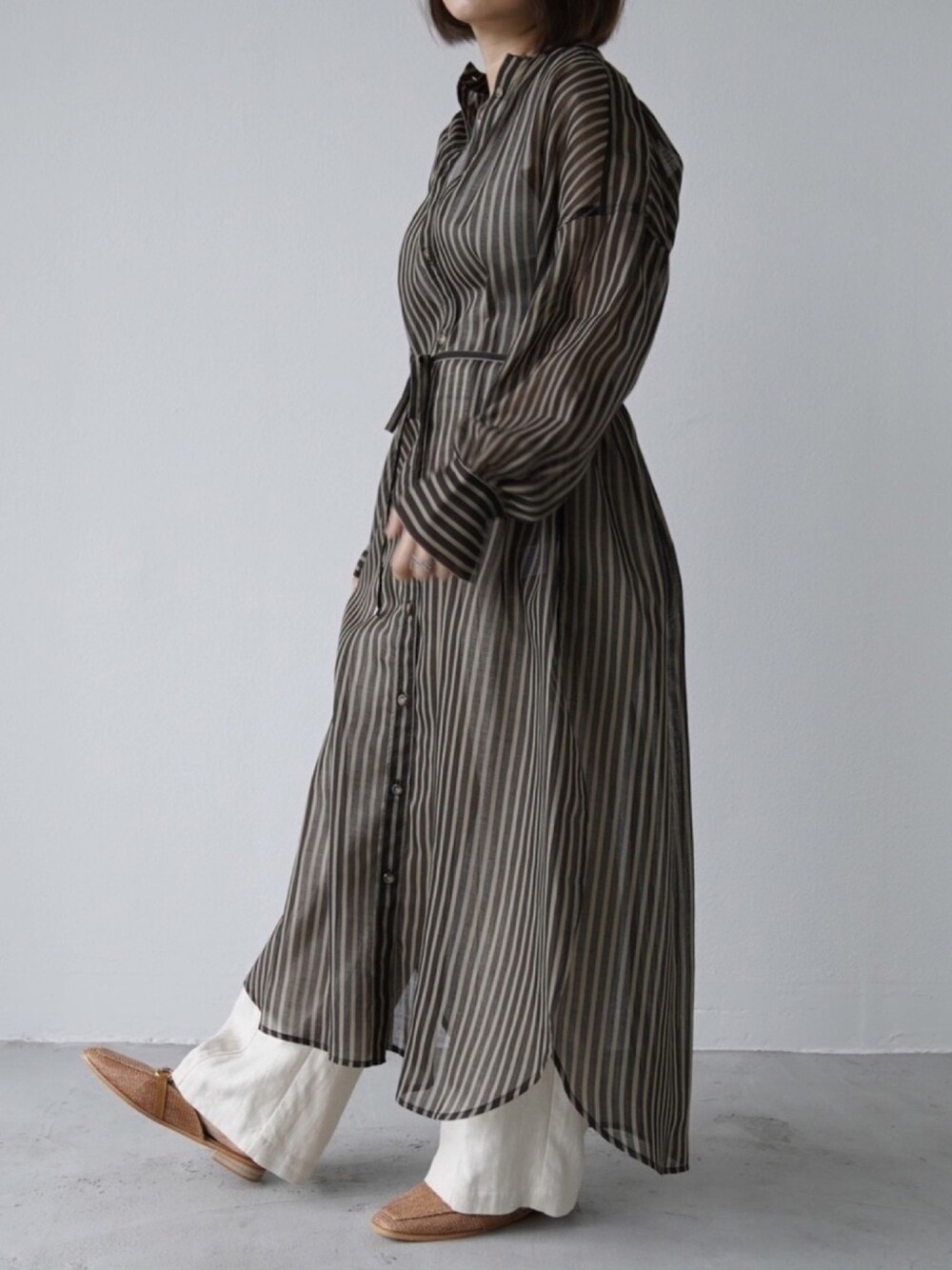 Aunt Marie's たっぷりロング丈のシャツワンピースも シアー素材だと重たく見えないので 低身長さんにもオススメ◎