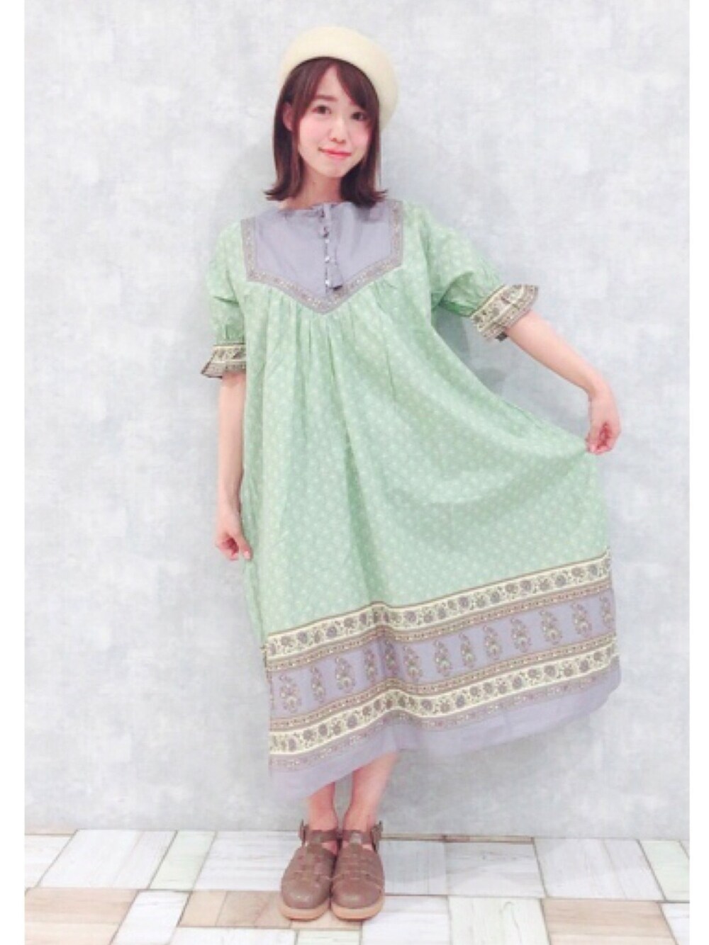 春色のインド綿ワンピ🌸 ミニマムさんでもちょうどいい丈"((∩︎´︶`∩︎))" デニム合わせでチュニックとしても☺️💓