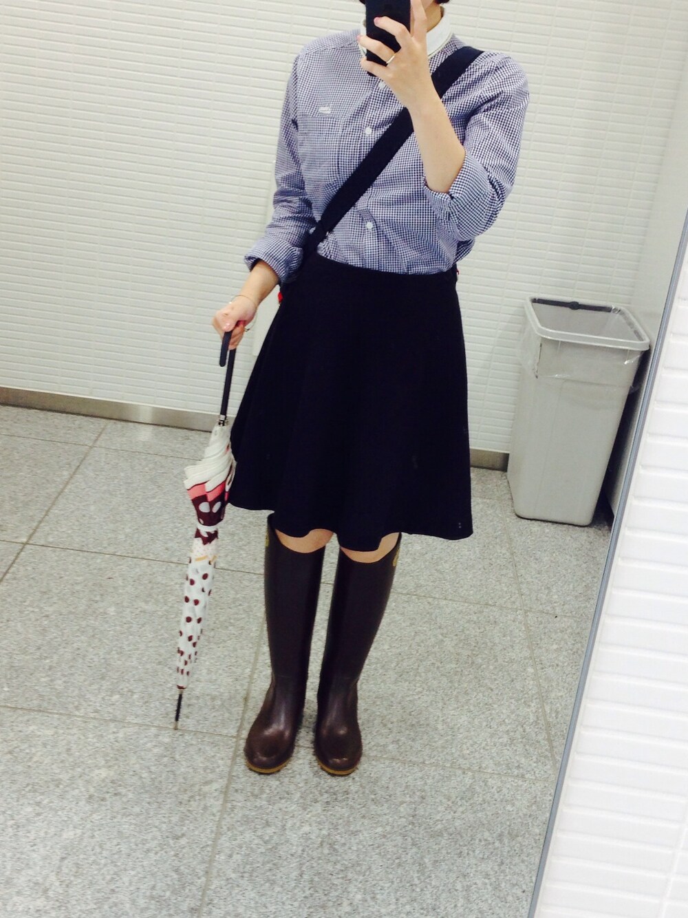 使い方が変わってる?? 雨の日コーデ シャツ GU スカート ユニクロ レインブーツ ダフナ