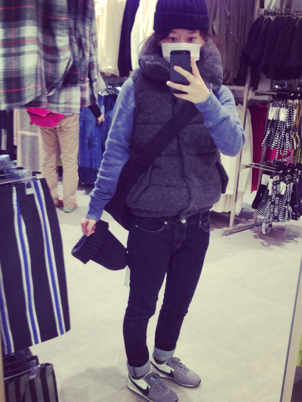仕事の時はくそみたいに適当なので なかなかアップすることはない…… GUでニット帽を買っちゃいましたー! パーカー h&m ダウンベスト ローリーズ スキニー GU スニーカー ナイキ マンハッタンのメッセンジャー 平日休みすばらしー!