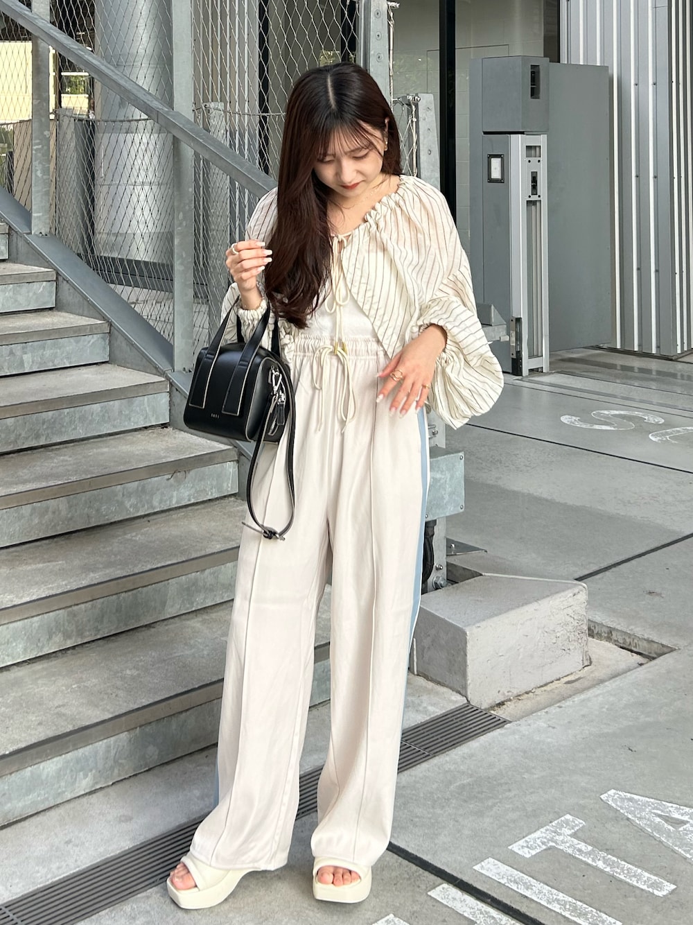 - - - - - - - - - - - ivory × blue 𓂃𓈒𓏸 - - - - - - - - - - - 珍しくすごいカジュアルなコーデ💭🫶🏻 あんまりジャージっぽいパンツを お出かけの時に履くことないんだけど 履いてみた🩰 デザインあるトップス合わせると カジュアルさ中和されて結構 お気に入りコーデかも .. 🤍 - - - - - - - - - - - - - - - - - - - - - - - ,🏷 instagram : ami___nmo director : umm. claïr YouTube : amimiyu channel 双子でYouTubeやってます💭🩰 よかったら観にきてください 🍑 - - - - - - - - - - - - - - - - - - - - - - -