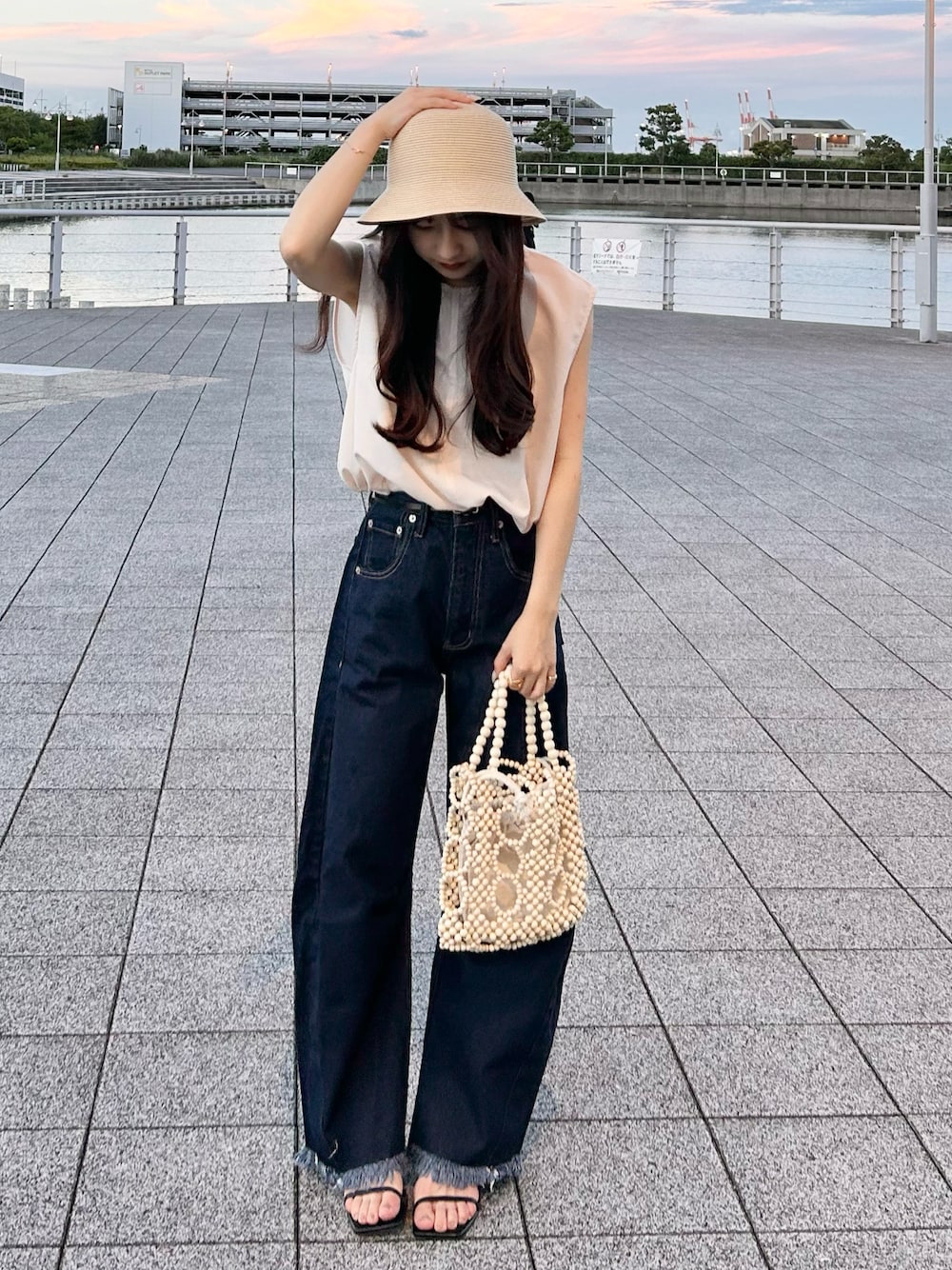amiのハンドバッグ「ビーズ編みハンドバッグ」を使ったコーディネート
