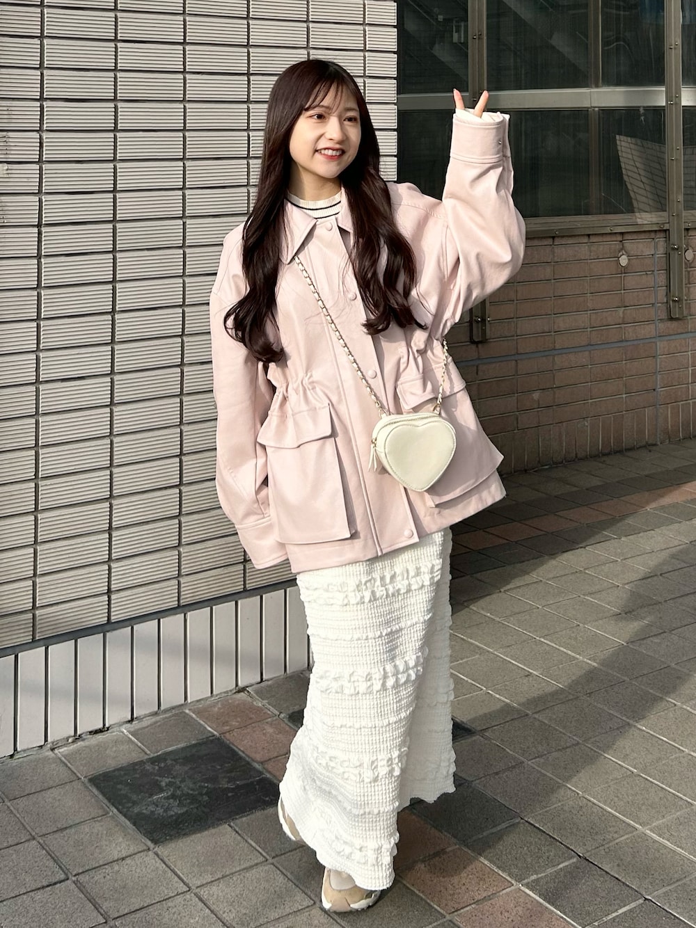 - - - - - - - - - - - - - - - pink and white 🍑 - - - - - - - - - - - - - - - 今年大活躍なピンクレザージャケット♡ ぽこぽこのスカートが可愛くて この合わせとってもお気に入り 𓂃𓈒𓏸 - - - - - - - - - - - - - - - - - - - - - - - ,🏷 instagram : ami___nmo director : umm. claïr YouTube : amimiyu channel 双子でYouTubeやってます💭🩰 よかったら観にきてください 🍑 - - - - - - - - - - - - - - - - - - - - - - -