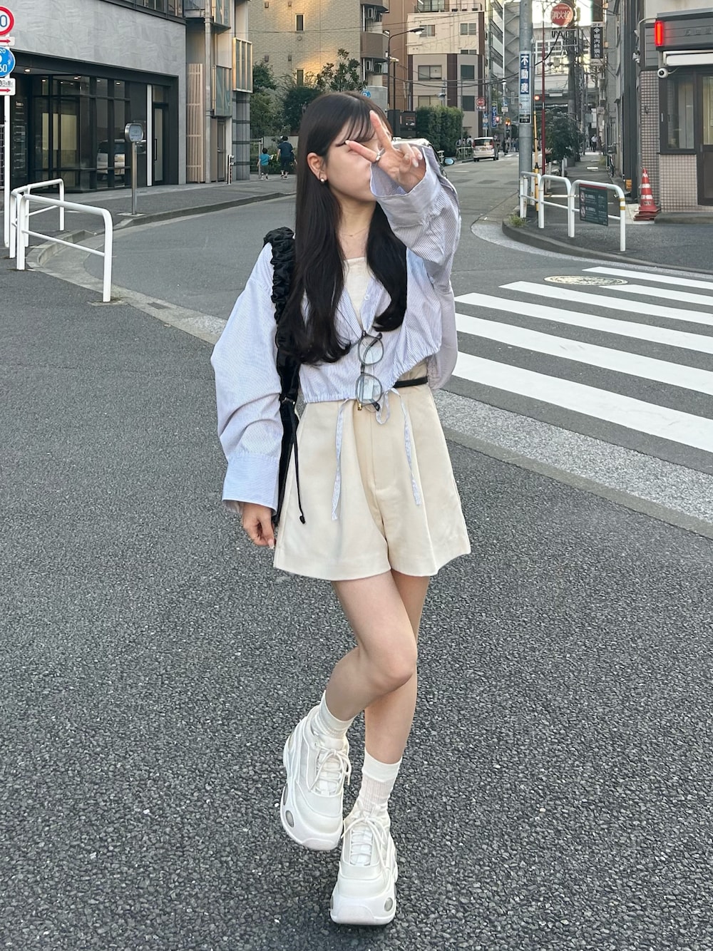 長袖だけどストライプに ivoryのトップスで爽やか初秋コーデ🍃 - - - - - - - - - - - - - - - - - - - - - - - ,🏷 instagram : ami___nmo director : umm. claïr YouTube : amimiyu channel 双子でYouTubeやってます💭🩰 よかったら観にきてください 🍑 - - - - - - - - - - - - - - - - - - - - - - -