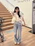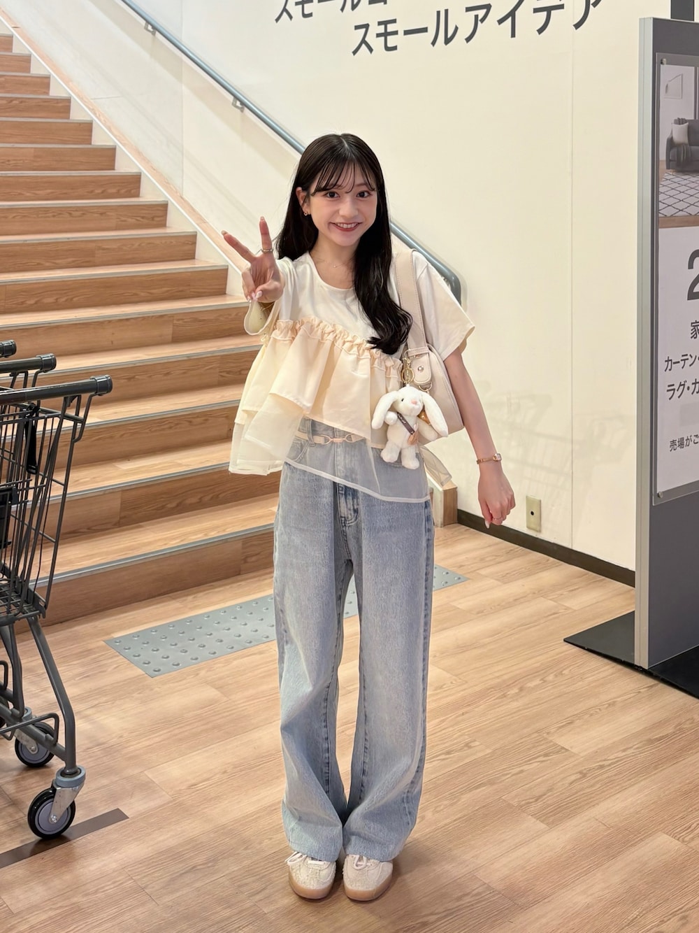 デニムで甘めカジュアルなコーデ🎀 フリルついたTシャツがめためたに可愛い♡ - - - - - - - - - - - - - - - - - - - - - - - ,🏷 instagram : ami___nmo director : umm. claïr YouTube : amimiyu channel 双子でYouTubeやってます💭🩰 よかったら観にきてください 🍑 - - - - - - - - - - - - - - - - - - - - - - -