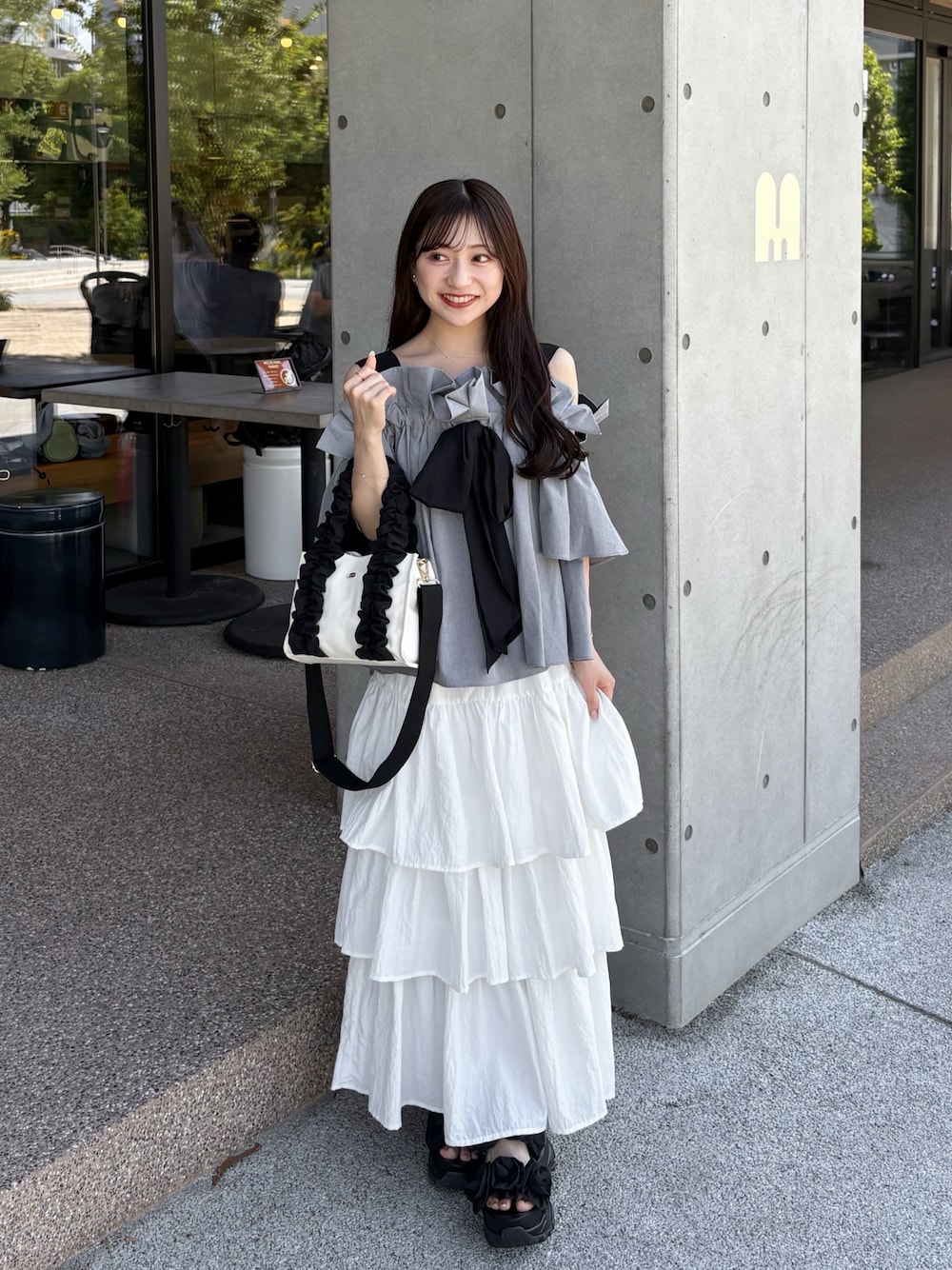 amiのシャツ/ブラウス「オフショルリボンブラウス」を使ったコーディネート