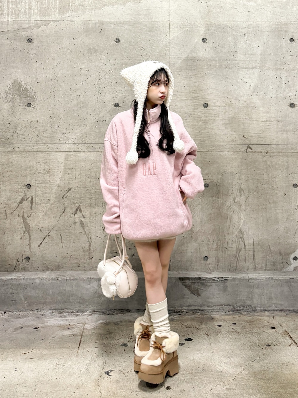 amiのスウェット「ボア オーバーサイズ ハーフジップ GAPロゴプルオーバー」を使ったコーディネート