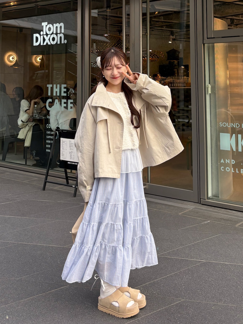 amiのトレンチコート「【3色展開/シワになりにくい】スタンドカラーショートトレンチ」を使ったコーディネート
