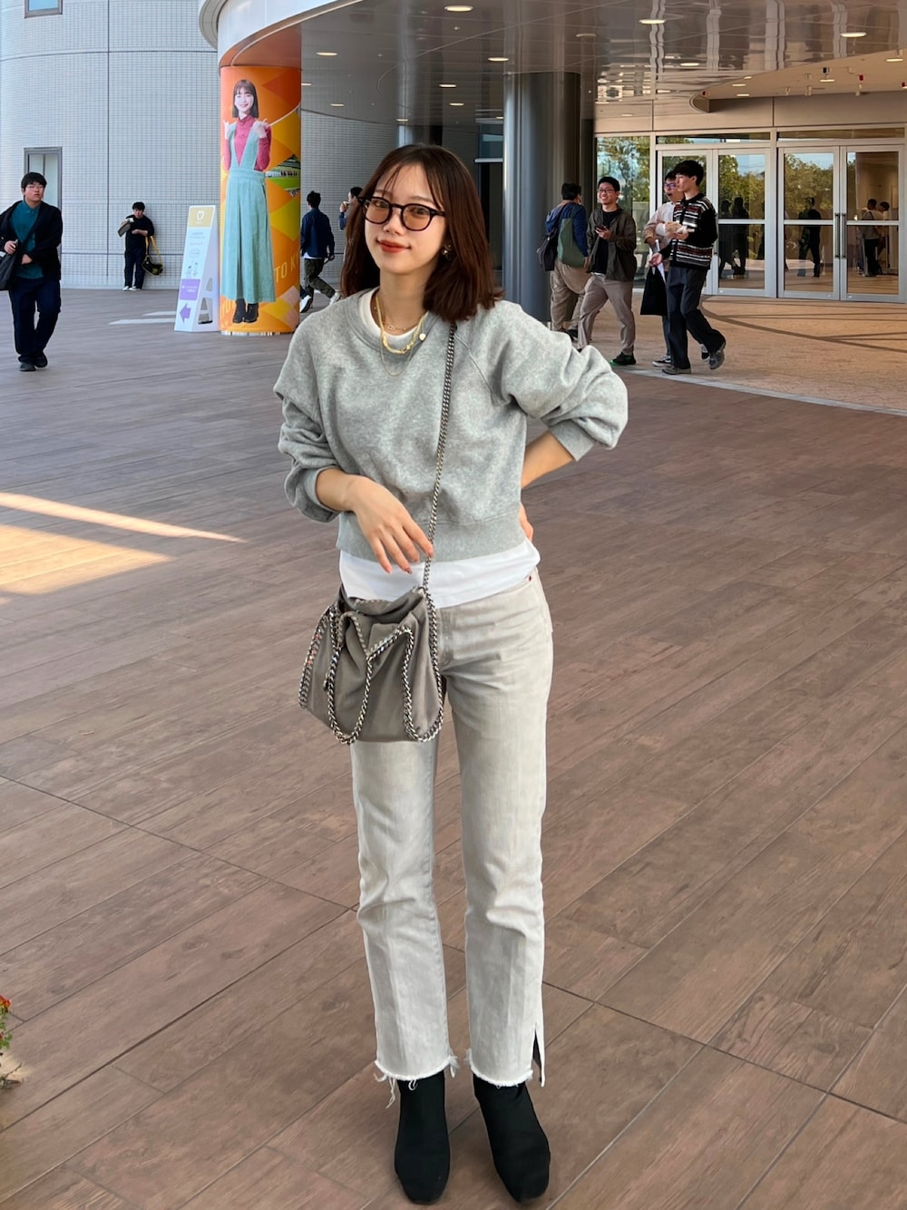 amiのサングラス「【WEB限定】ウェリントン型サングラス|太縁|黒縁|カラーレンズ|ユニセックス|CLASSIC」を使ったコーディネート