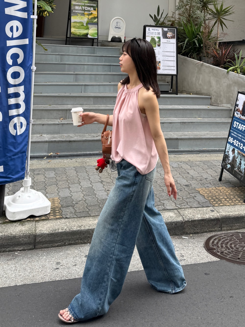 トップスとサンダルをピンクで合わせて 夏っぽコーデ🌺 トップスサラッときれて可愛くてお気に入り プロフィールリンクからチェック頂けます🔗 Instagram @s.miii1001