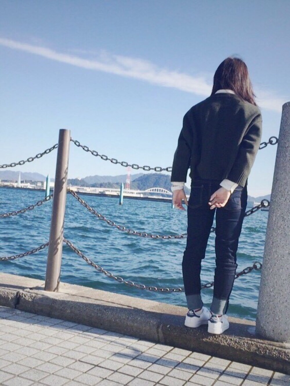 スキニーデニムにニット、シャツの いい子ちゃんコーデです(^_^) かっちりなのでスニーカーと時計で すこし崩しました💭