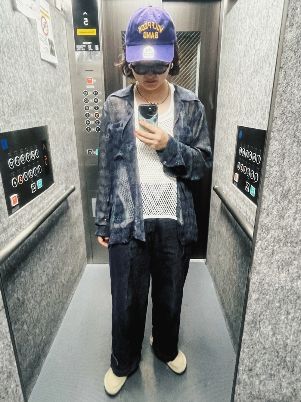 vulfpeckのキャップとneedlesのシフォンシャツの色味がベストマッチ!焼き芋はファンク🍠