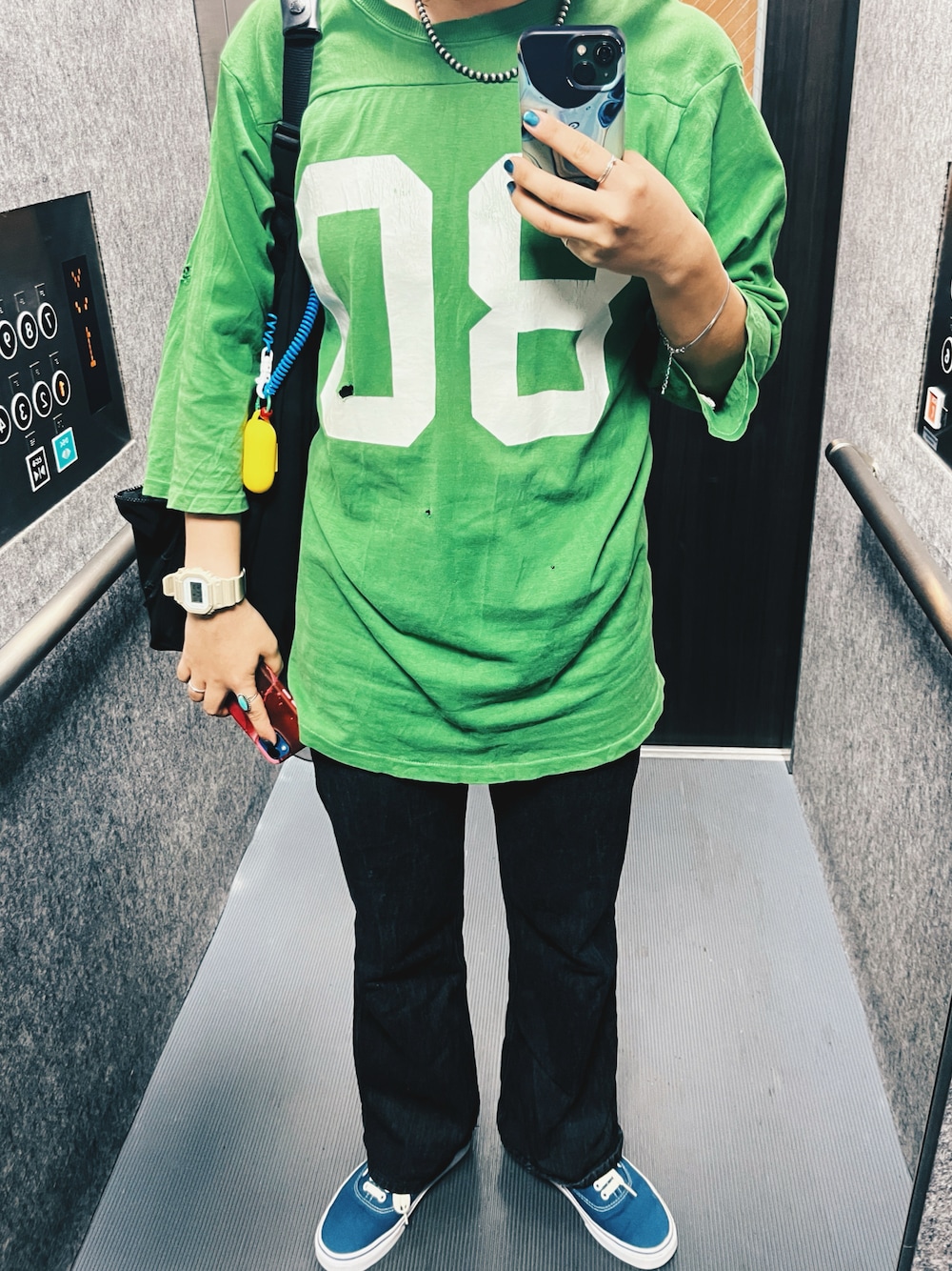 セカストで手に入れたHANESPORTSのTシャツが本当可愛い!エルボーパッチ もついてる。あと早く冬服着たい