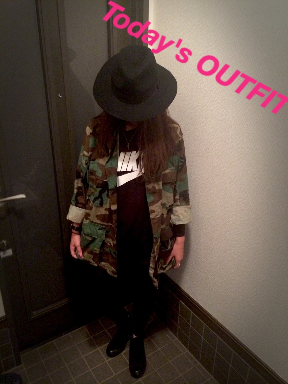 真っ黒コーデに ミリタリージャケットを 羽織ってみました♥︎ 大好きなミリタリーコーデ♥︎