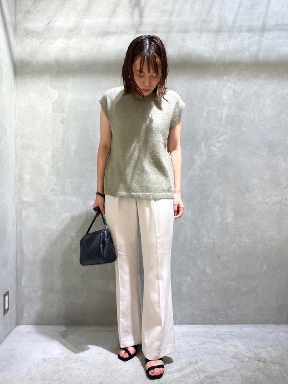 夏らしい明るい色のノースリーブトップスで シンプルにまとめてみました! トップスはバックにデザインがあって 可愛いです♡ キレイめ、カジュアル共に使えるパンツはセンタープレスと フレアでスタイルアップ間違いなしのアイテムです◎ 淡い色×淡い色の合わせの時は 小物を濃い色にするとまとまります☺︎