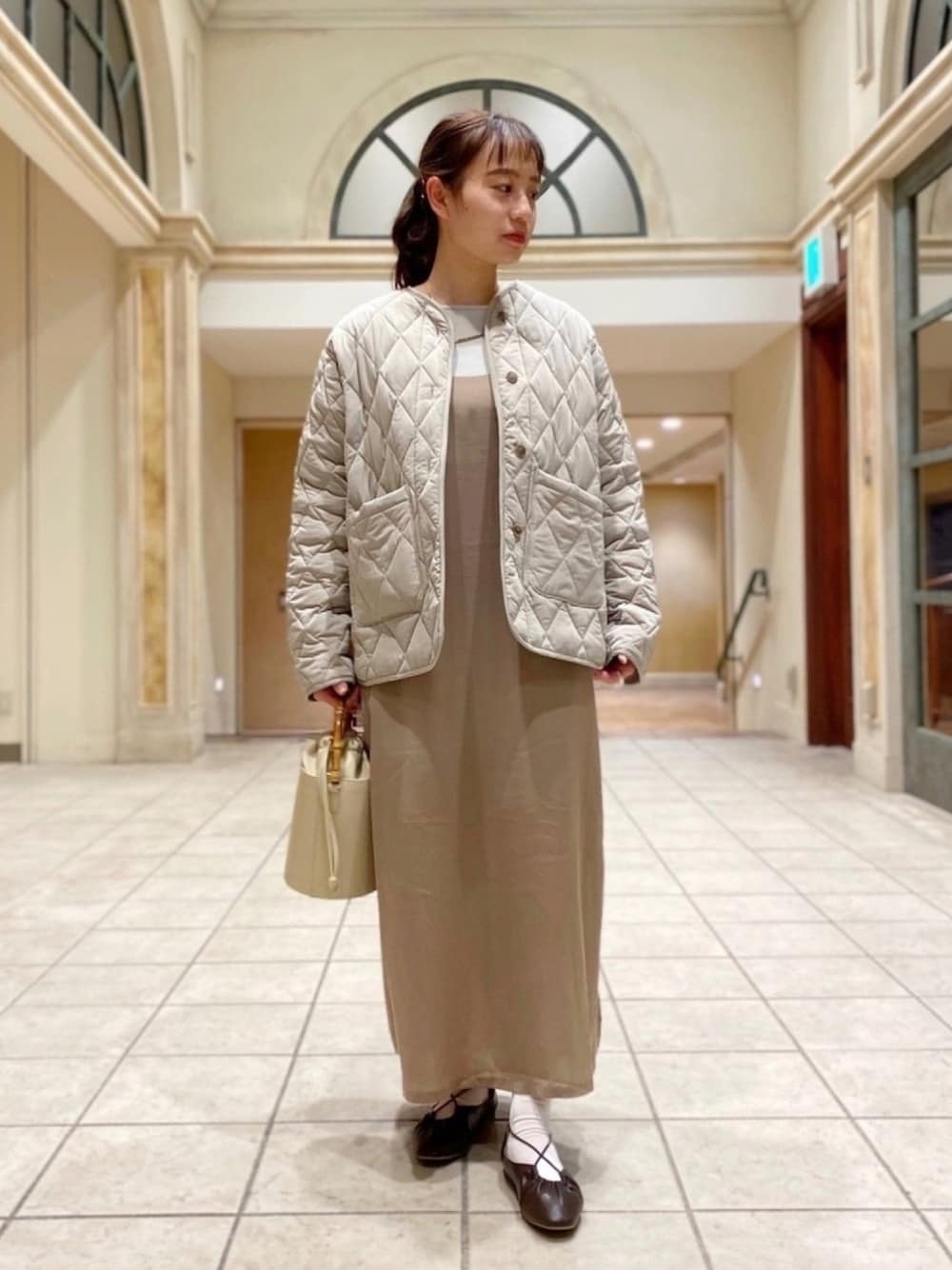 AMIのノーカラージャケット「キルティングショートコート」を使ったコーディネート