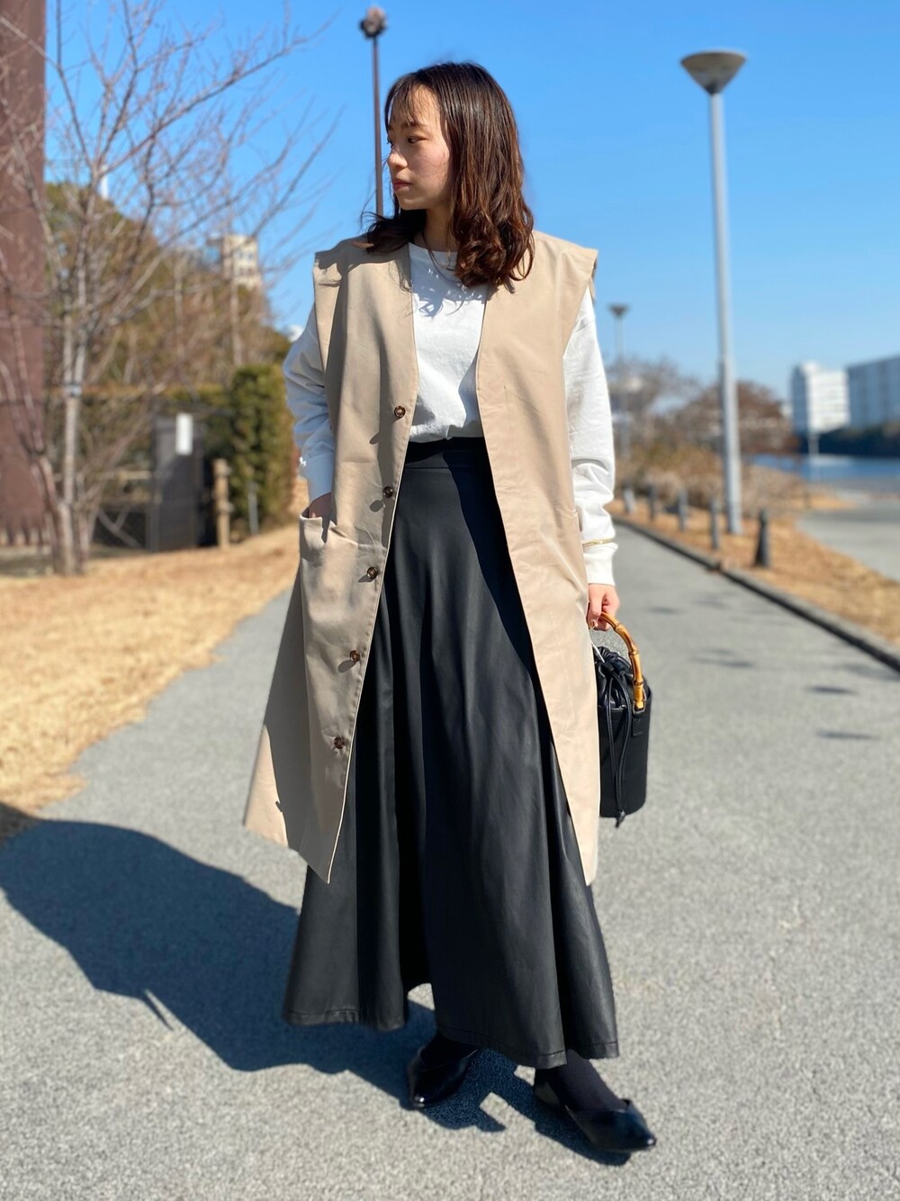 AMIのスカート「フェイクレザーフレアスカート」を使ったコーディネート