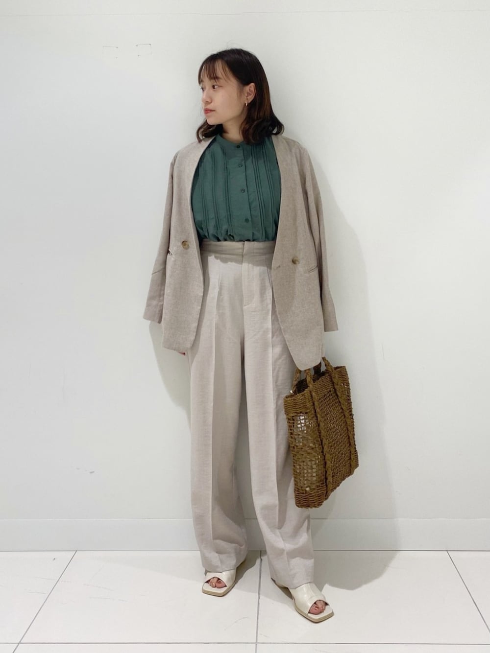 AMIのその他アウター「リネンノーカラージャケット」を使ったコーディネート
