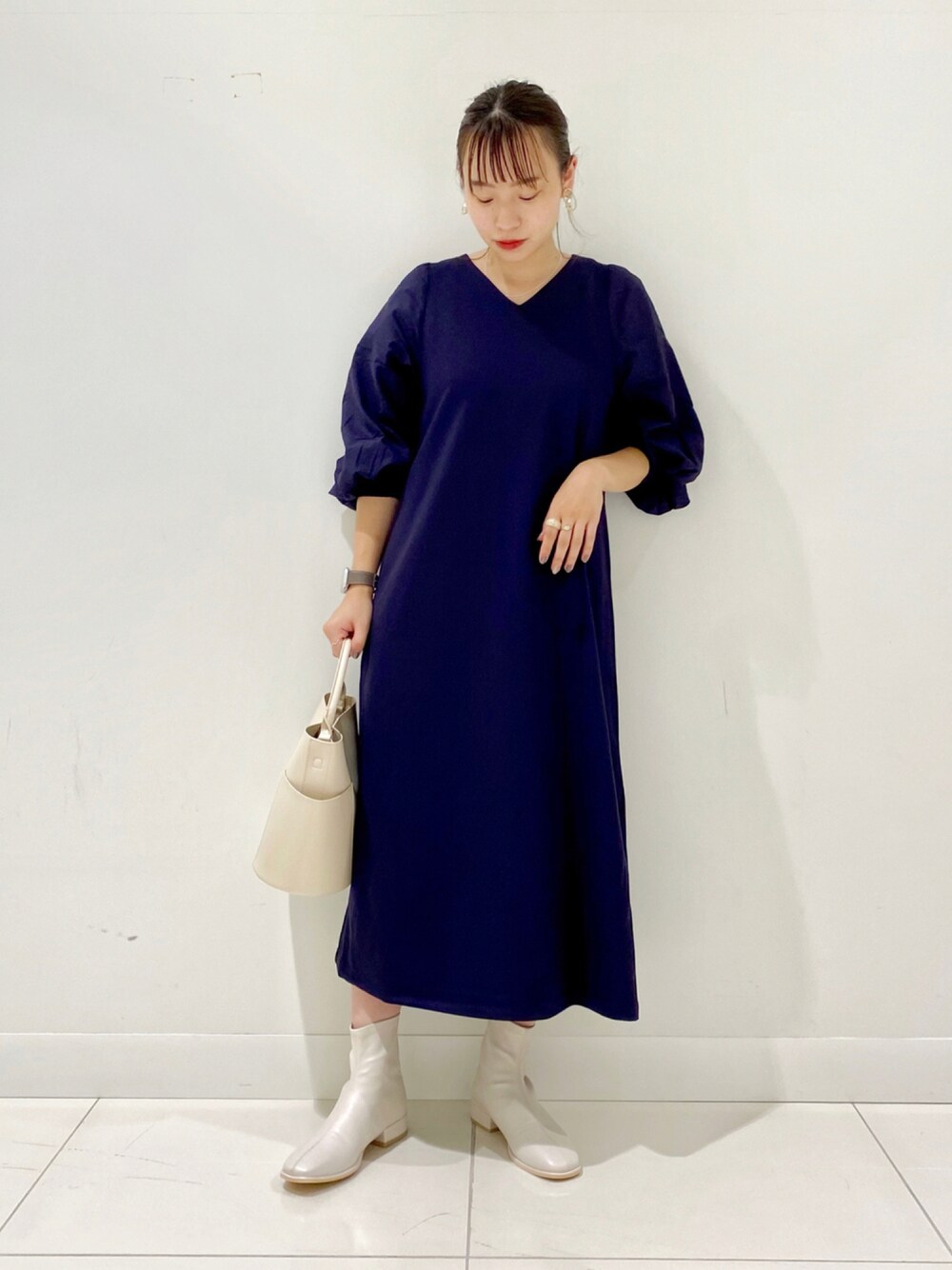 AMIのワンピース「Vネックポンチワンピース」を使ったコーディネート