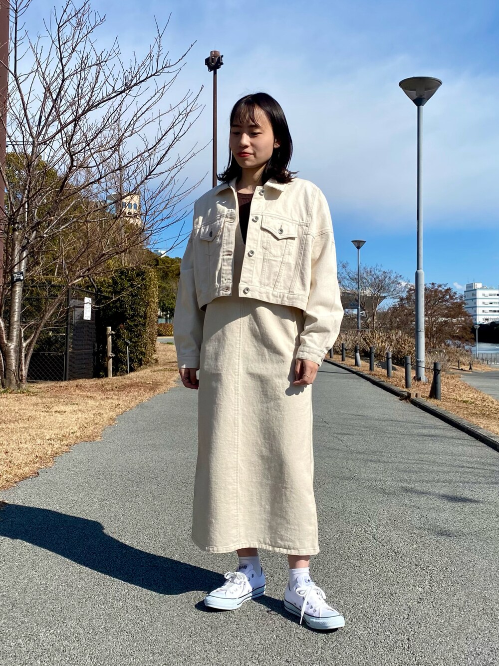 AMIのデニムジャケット「タックスリーブショートGジャン」を使ったコーディネート