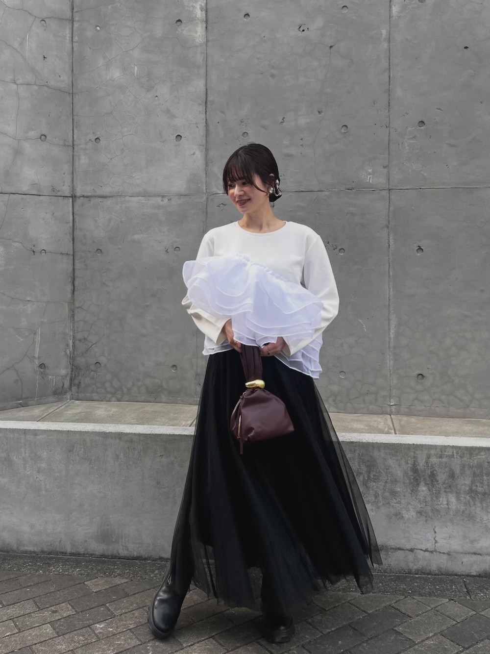 モノトーンコーデにボルドーのバッグが 差し色に✨️ 女性らしくどこかエレガントな雰囲気を 感じられるコーディネートです💜✨️ ♥トップス♥ アシンメトリーレーストップス/m870 【size】Free 【color】White.Black 【material】表地:ポリエステル50%綿43%ポリウレタン7% 別布:ポリエステル100%