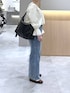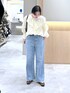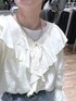甘めなブラウスはデニムと合わせて◎ 小物も辛めにすることでかわいらしくなりすぎず🫦