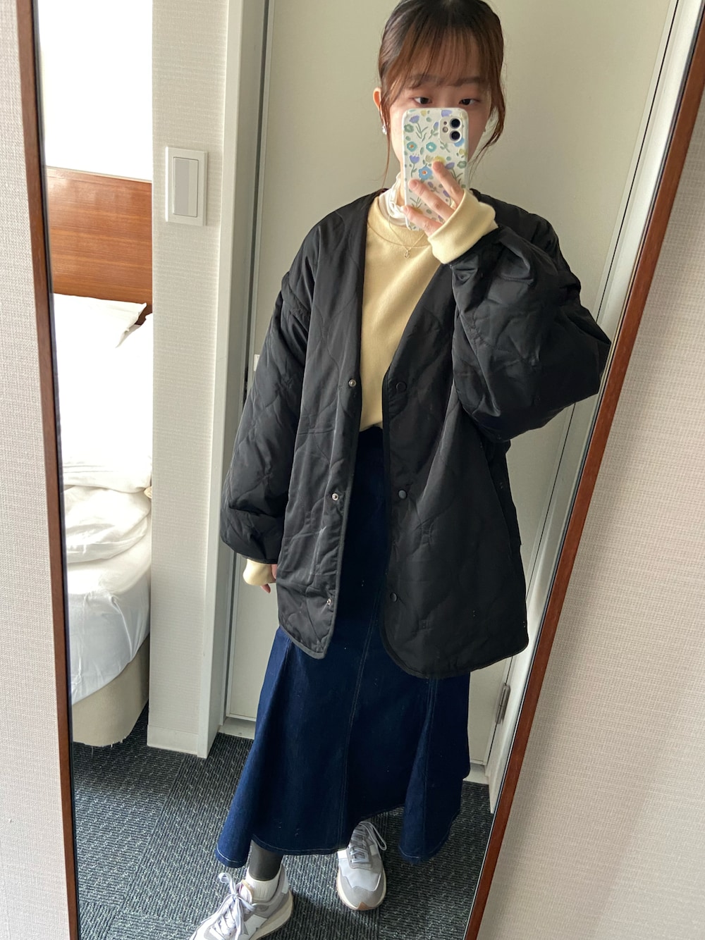 soraのブルゾン「【袖部分取り外し可能でベストとしても使える!】【薄手素材で長い季節着用できる】2wayキルティングアウター」を使ったコーディネート