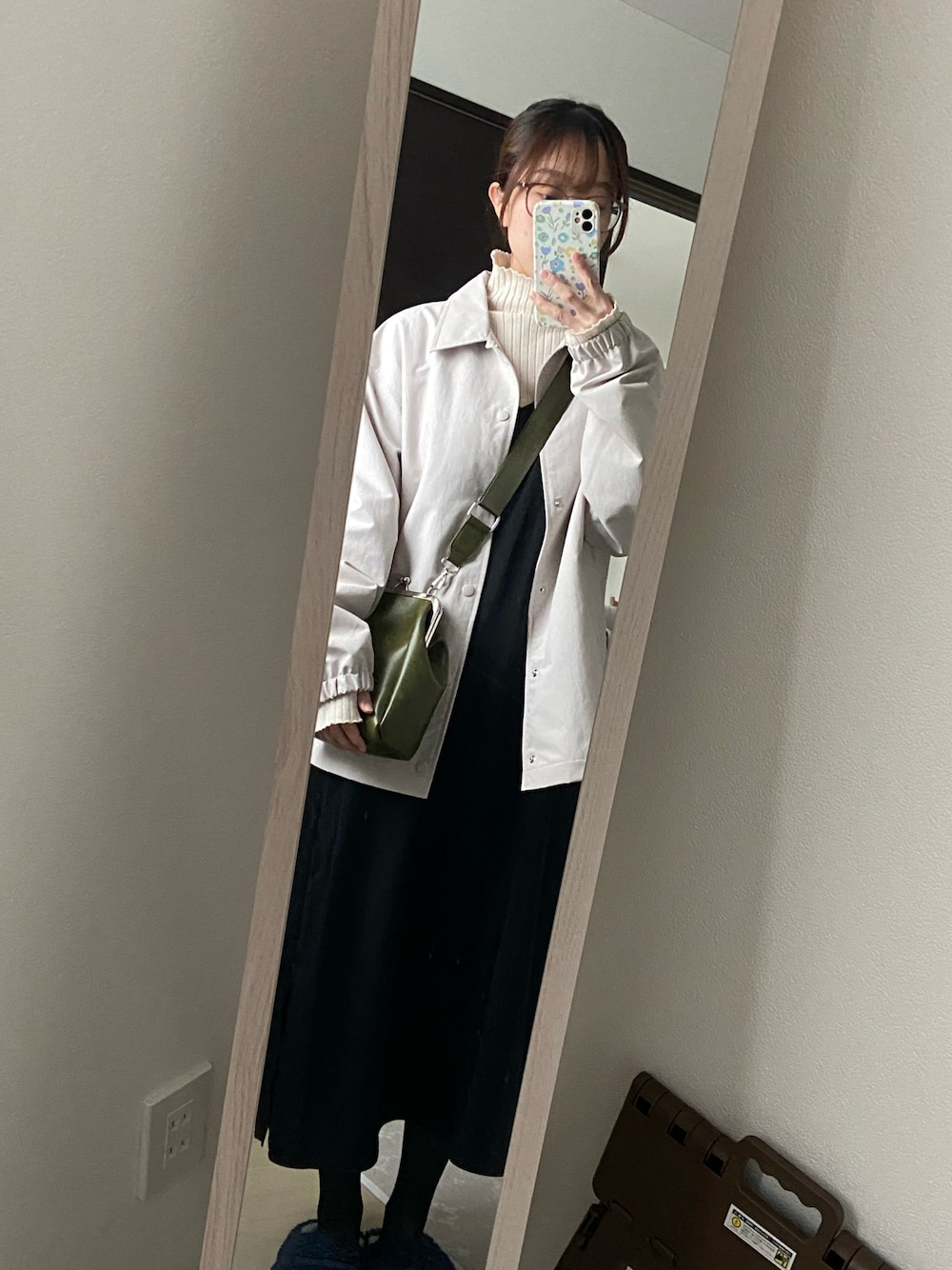 UNIQLOメンズのコーチジャケット 可愛すぎる!! バッグの緑でアクセント🌿 コメダ珈琲行ってくる