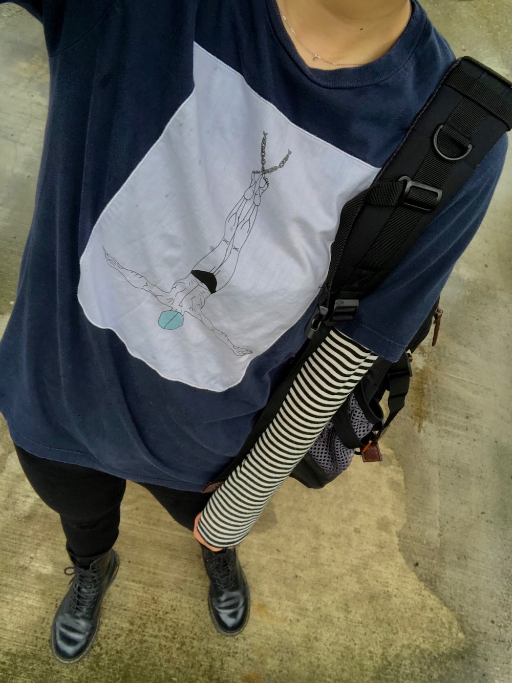 腐っても鯛 Tシャツ1500円くらい/メルカリ シマシマ105円/たんぽぽハウス 10ホール3000円/メルカリ リュック1000円/2ndハウス