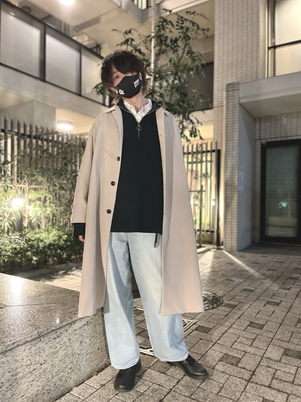 ハーフジップのニットをシャツをインナー着て見ました 写真だと分かりづらいw tai×JUNRed リラックスワイドリベットシャツ JUNRed スムースタッチドルマンステンカラーオーバーコート anown ハーフジップハイネックオーバーニット GU ドライポンチロングタンクトップ Ellno Loset ウエスタンナローベルト SENSE OF PLACE ヴィンテージデニムストレートパンツ RAGEBLUE プレーントゥシューズ