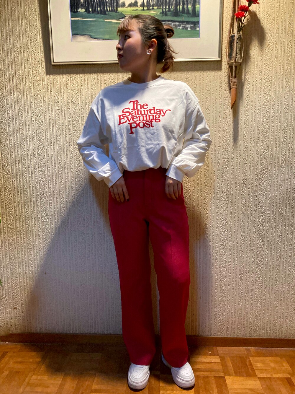 バックプリントが可愛いロンTにカラーパンツを合わせてみました𓂃𓈒𓏸︎︎︎︎