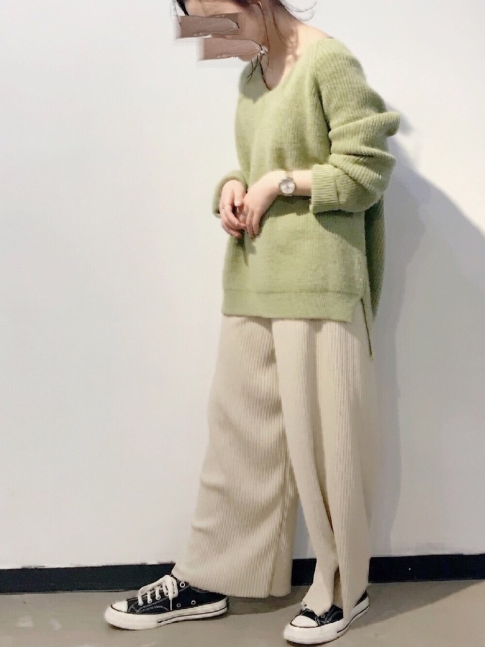 ゆるゆる楽ちんコーデ(楽ちんコーデしか着たくない) 本当にこのライトグリーンのニットかわいい😭💘かわいいです😭💘