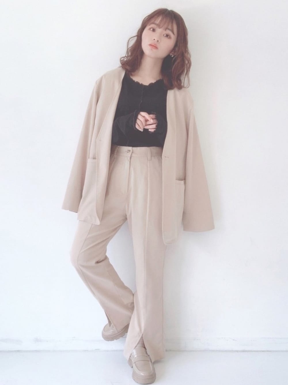 いつも見ていただきありがとうございます⸜🌷︎⸝ 今日のコーデ...... 我ながら激かわ。そして盛れてる〜〜!!! ジャケット×パンツのセットアップは 難易度高いな、とかなんか挑戦出来ないな という方もいらっしゃるかと思うのですが もうね〜セットアップは着たもん勝ちです☺︎ 気になっていたら是非、1回着てみて欲しいです︎︎︎︎︎︎☑︎ オシャレにキマって自信つくかも👀 セットアップ着てダサく見える事の方が少ないし VANNIEのこのジャケットは がっちりアウター系のジャケットではなくてノーカラーで 柔らかく、さらさらした生地なので サラッと軽く羽織れる感じで比較的挑戦しやすいです◎ たまには中を黒でしめてもかわいいかなと思って合わせてみたんですが、可愛いが過ぎた... ちなみに着ているパイピングメロウTOPSの黒は少し透け感があって、今年らしいとろとろした生地なので重たくなりにくいです◎ 中に着るのを明るいカラーにするとふんわり軽やかで透明感のある感じですが今日は かっちりオンナマエ女子になりました👐🏻🤍 たまにはちょっと違う雰囲気もいいですよね☺︎ え、なが。笑 読んでいただきありがとうございましたっ Instagram▷@nono_vu