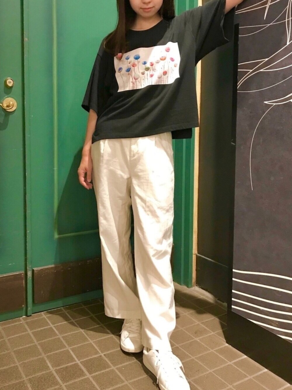 母の描いた素敵なアネモネが特徴のオリジナルTシャツを着て撮影。 黒は合わせやすくて個人的にお気に入りです✨ 【アネモネTシャツ(黒)】ハンドメイド・クリエイター作品のマーケットプレイス Creema https://www.creema.jp/item/10038766/detail @Creema_jpより