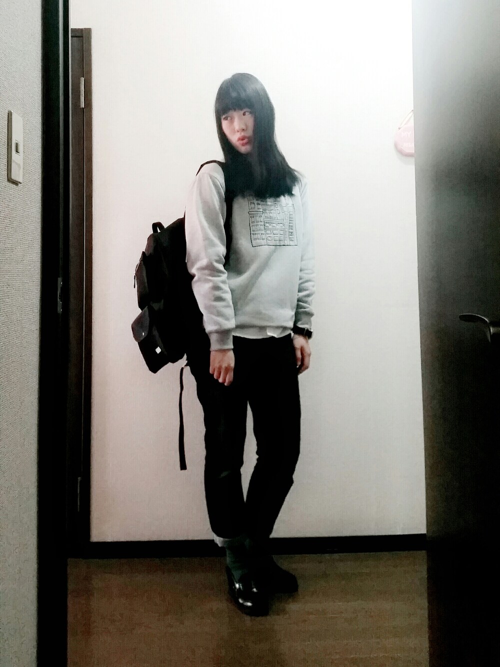 risaのスウェット「裏起毛裏毛 アパートプルオーバー」を使ったコーディネート