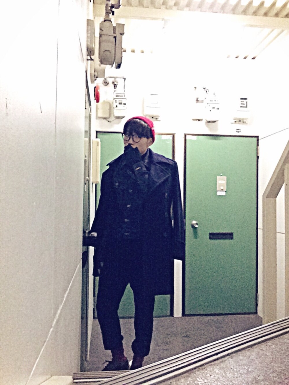 寒くて手袋してます! 画質が悪くてニットキャップと靴下を赤で揃えたんですがわかりずらいですね(-_-) 黒のタートルネック着てるんですがこれもわかりずらい笑 もっと上手く撮れるよう頑張ります…。