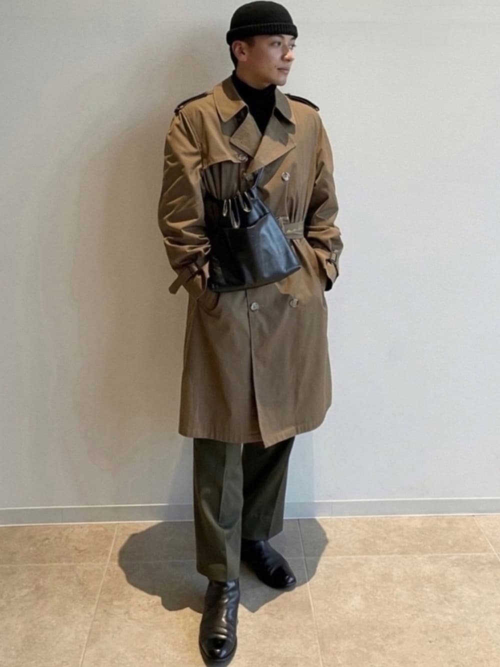 自分の趣味的に他人とはあまり被りたくない方だからほぼほぼ古着屋とかで買ったビンテージの物ばかりで商品に繋がるタグ?的なところが全くもってZOZOで買えない。。 このパンツはうちのおじいちゃんの物 筆記体でブランド読めません。 ビーニー、トレンチコート両方とも高円寺で買ったよ