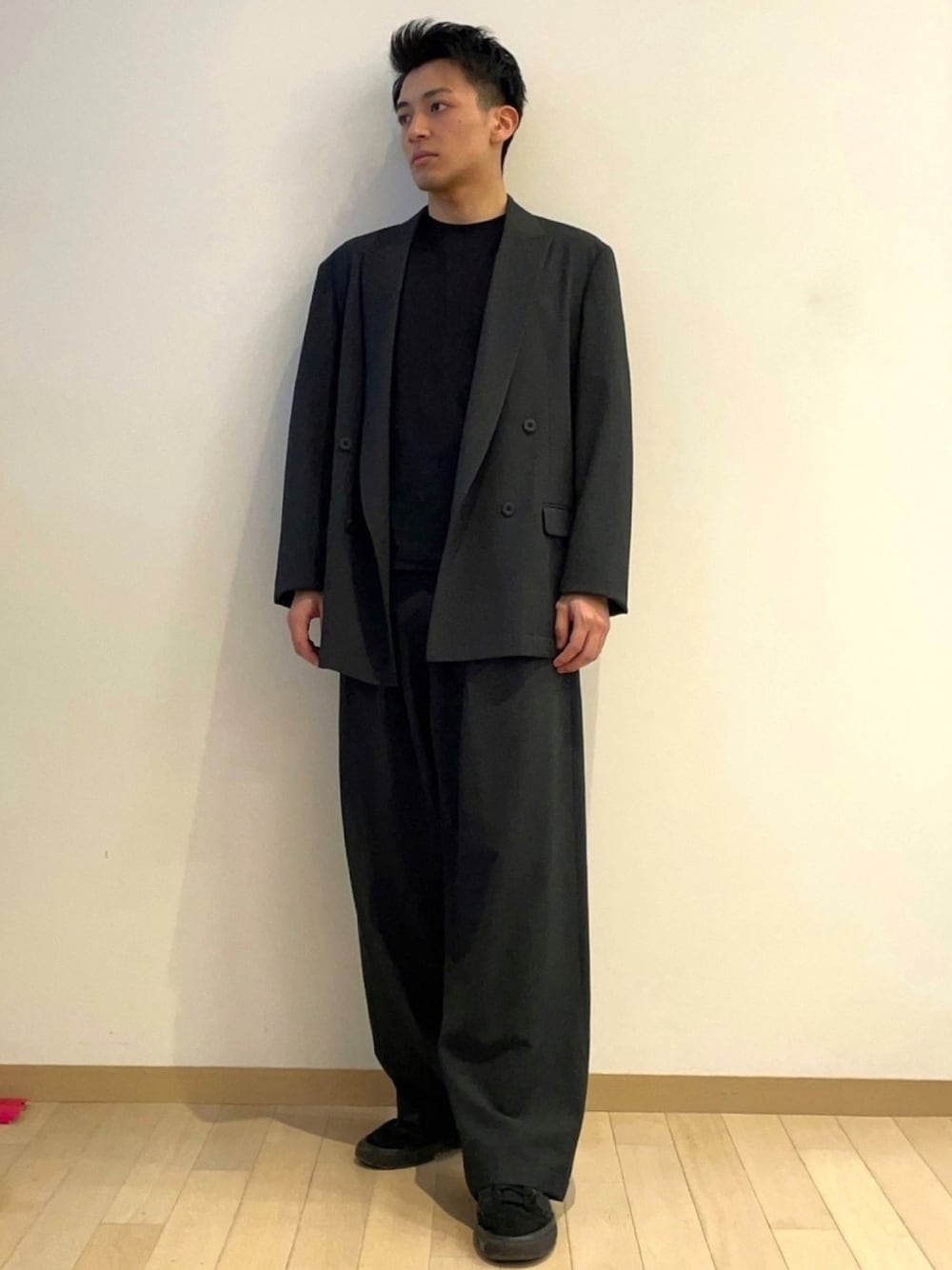 amonのテーラードジャケット「ウールライクストレッチツイル4Bジャケット」を使ったコーディネート