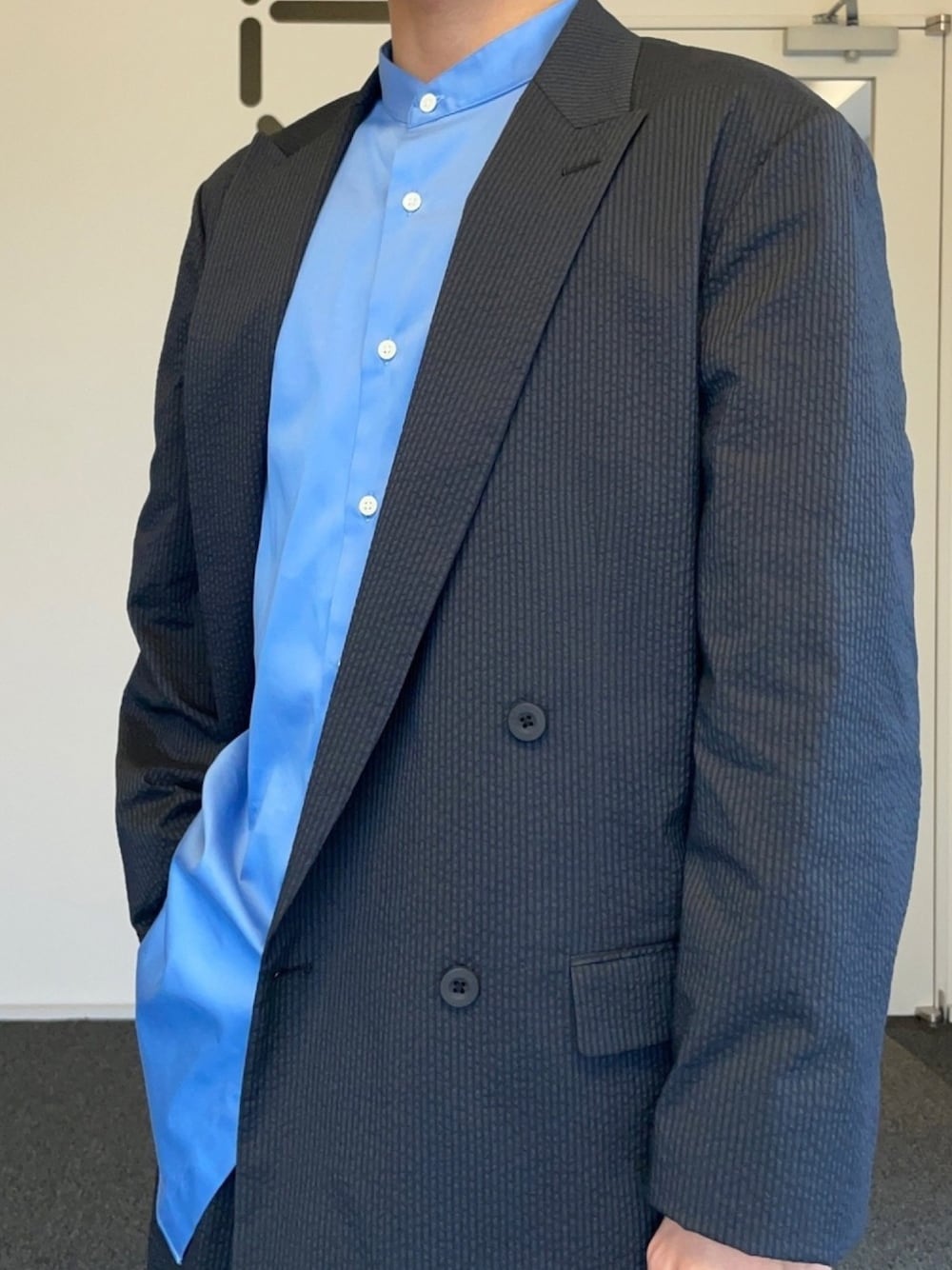 amonのテーラードジャケット「SOLOTEXスーパーストレッチサッカー4Bジャケット」を使ったコーディネート