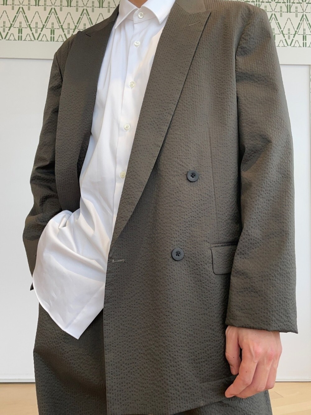 amonのテーラードジャケット「SOLOTEXスーパーストレッチサッカー4Bジャケット」を使ったコーディネート