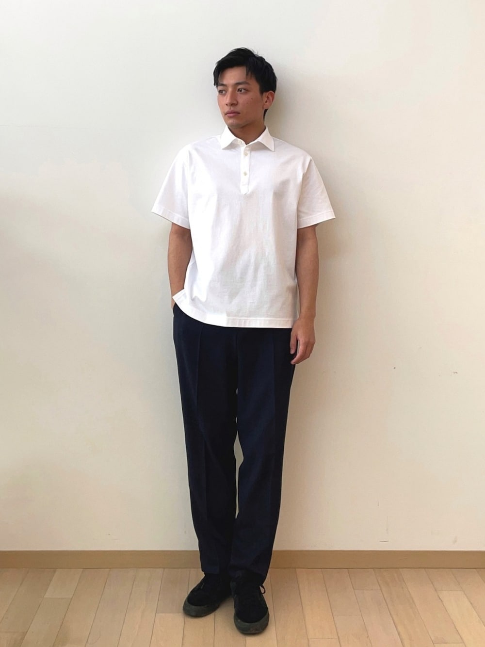 ちょいと早めだけれどスーパークールビズスタイルに最適 パンツはリネンライクになっていて見た目も着心地も清涼感バツグン このポロシャツはオンワードクローゼットで販売中です! 生地がしっかりしていてボタンを開けて着ても襟がしっかりと立つのがいいところ