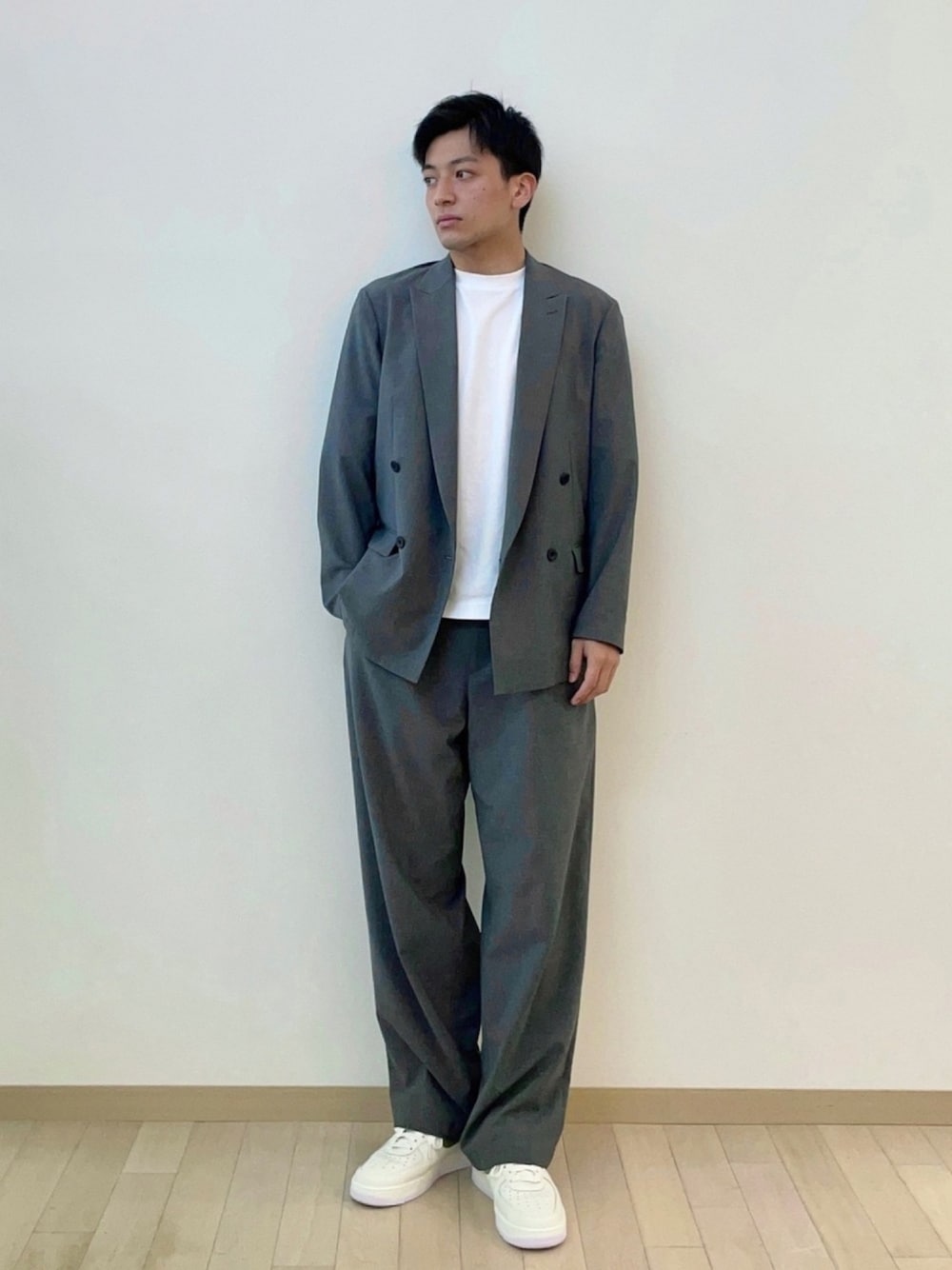 amonのテーラードジャケット「TECH-POLYESTER ストレッチ4Bジャケット」を使ったコーディネート