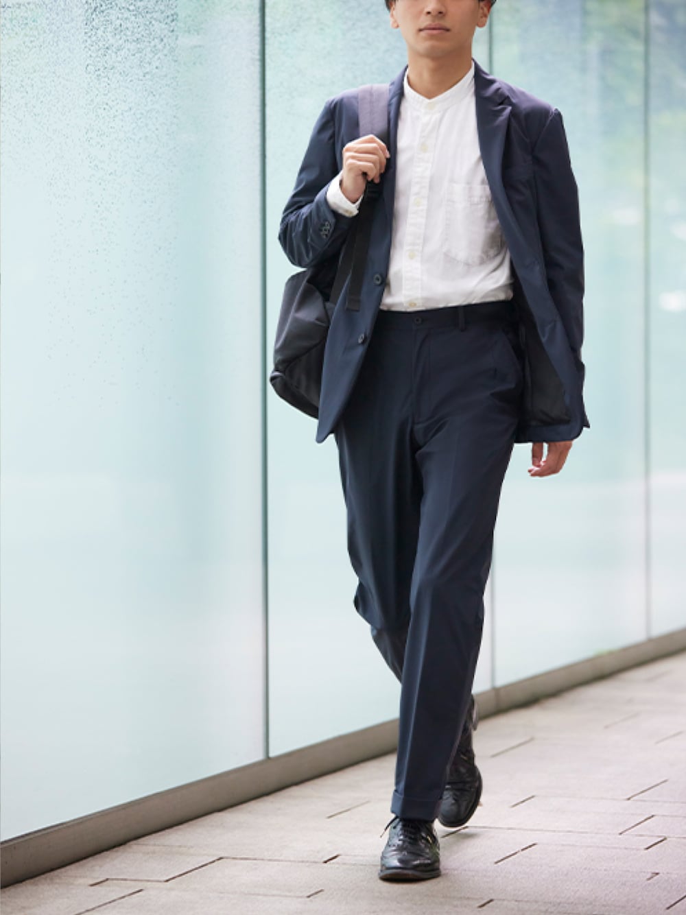 撥水加工が施されたセットアップ ビジネスにもカジュアルにも