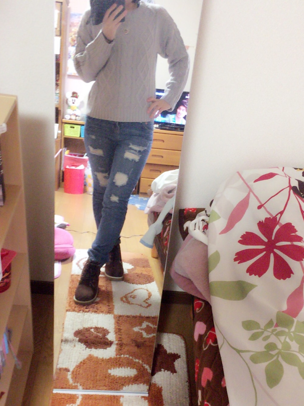 今日はプチプラです(ᐥᐜᐥ)♡ᐝ 寒いからニットなんです。