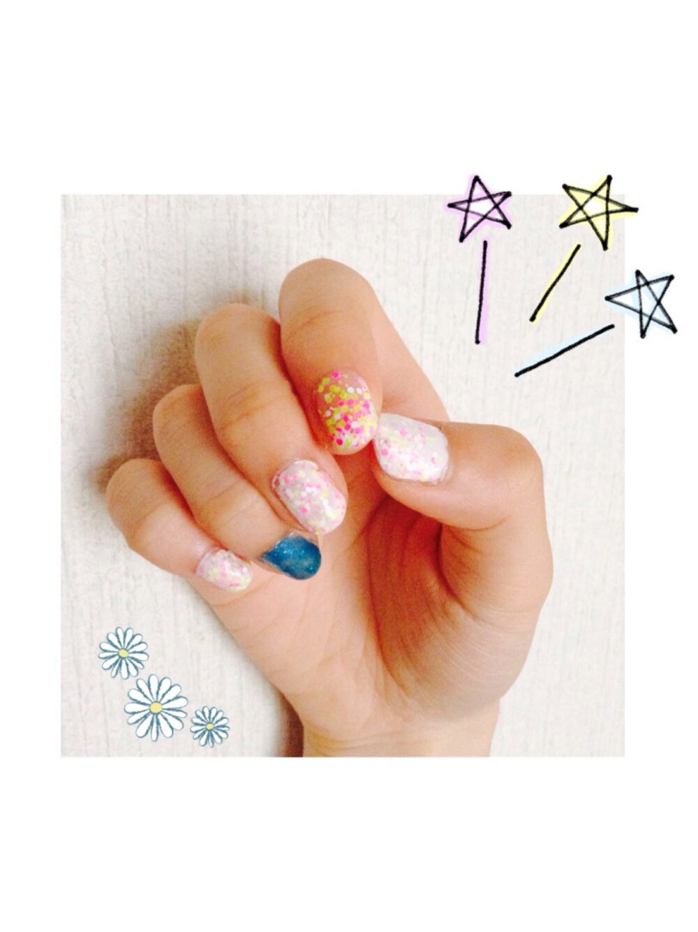 💤お盆💤 100均一 Pa おやすみ、1日だけ、ありました♡ わたしの、服に、合わなくて… 没ネイル🙅 でも、ポップな感じには、合うかも◎