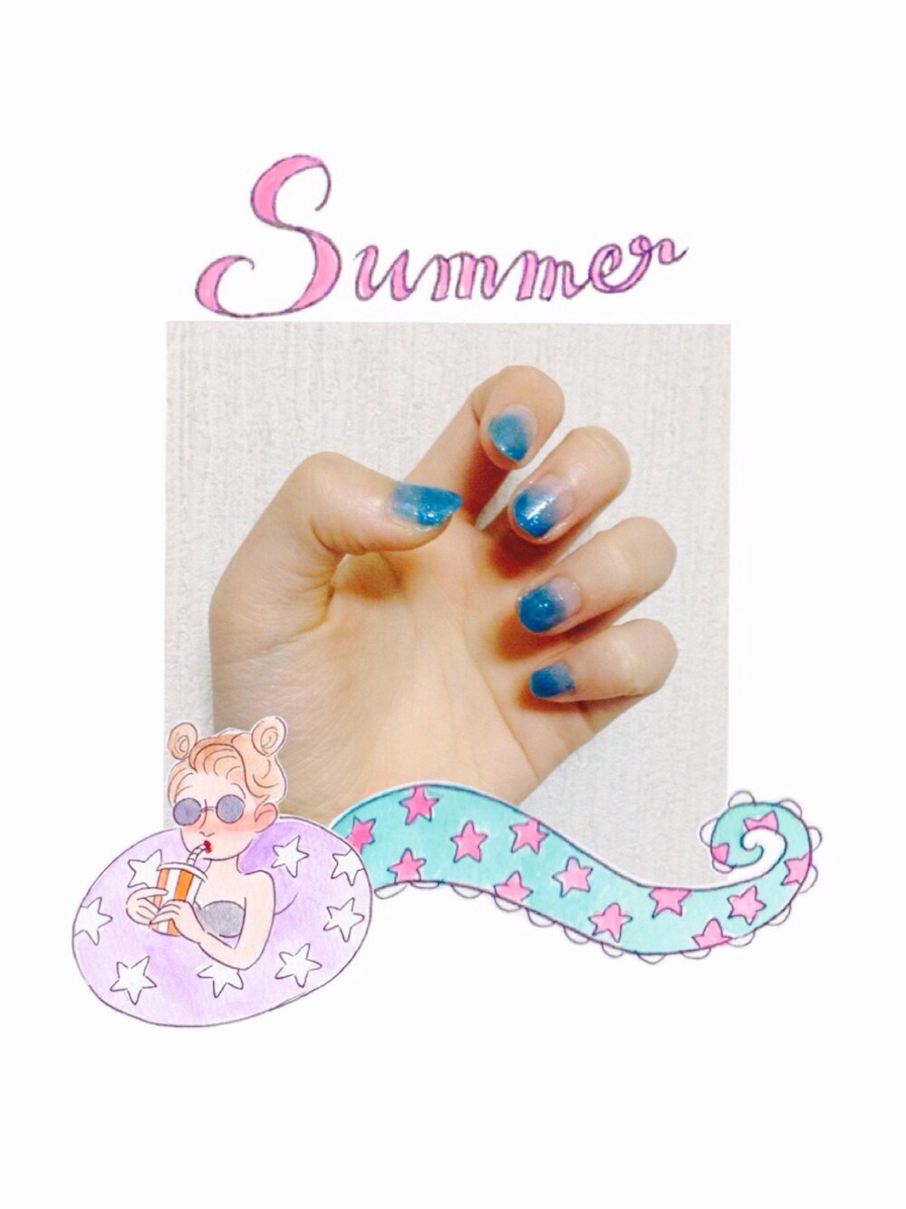 🌊夏🌊 Pa お久しぶりです😭 ネイル禁止、になって あまりできていません…😿 でも!今日は!おもいきって! 夏ネイル〜〜♡ 明日はコスプレDAY♡ たのしむます♡