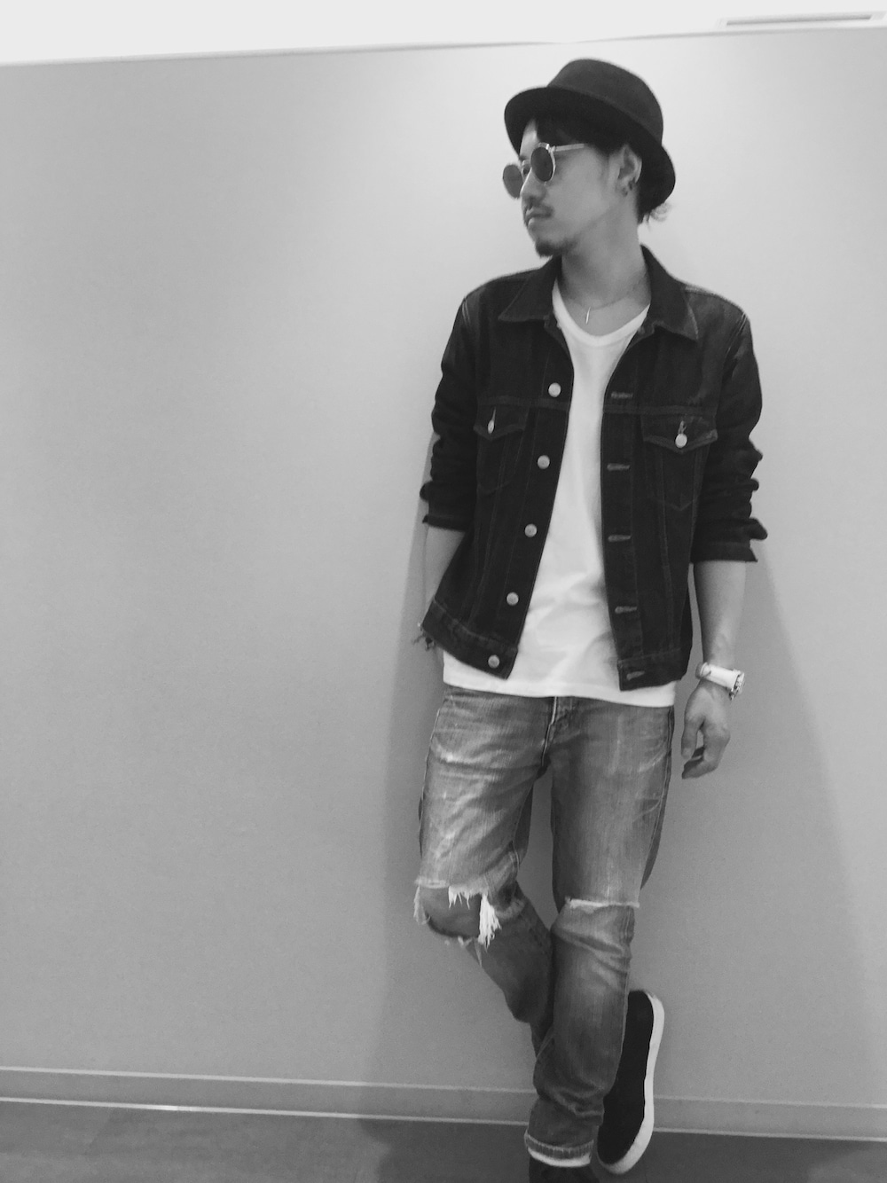 白黒でデニムでまとめてみました(^^) ついでに写真も白黒で(^^)🎶 相変わらずのクラッシュは安定で(^_^)