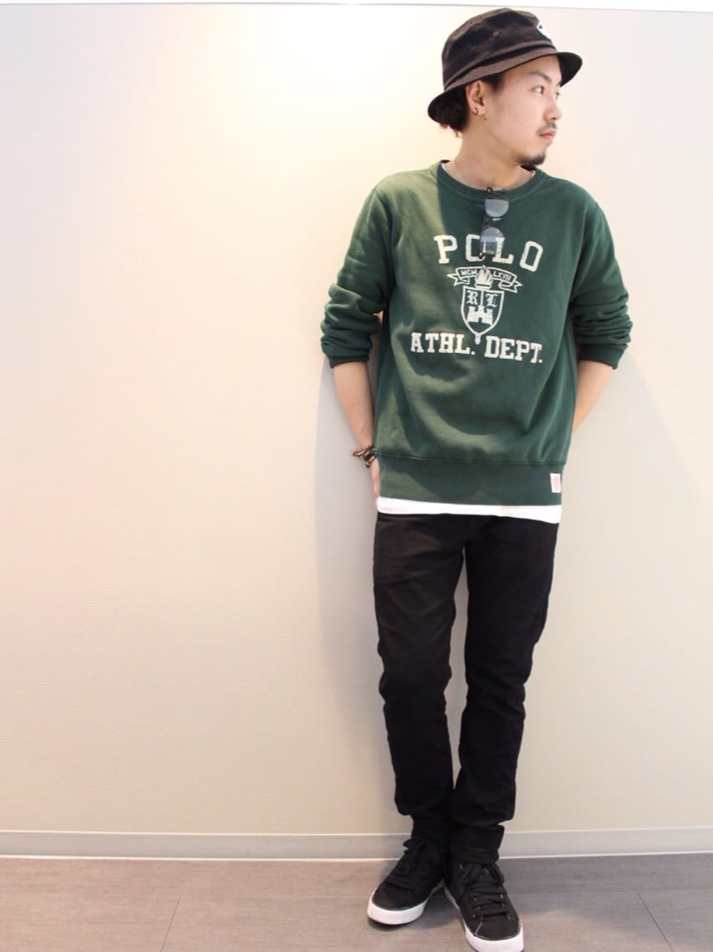 今日はスウェットトレーナー1枚でシンプルに黒パンで合わせてみました ちなみに緑のPOLOトレーナーは 探しまくって見つけました(^^;;笑 全体的にモノトーンコーデ!